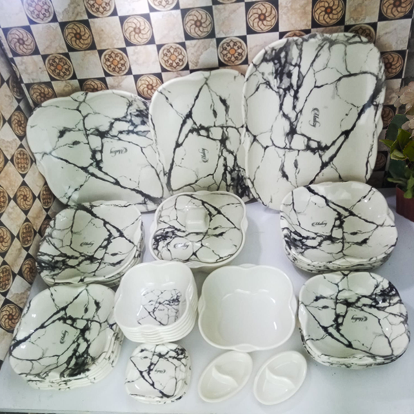If you're looking for luxury in your dining room, this marble-shaped melamine dinner set is the perfect choice. This 24-piece marble-shaped melamine set is perfect for parties and special occasions. The modern, easy-to-clean white marble design adds a chic touch to any table. Use it for every occasion and enjoy its practicality and luxurious appearance.