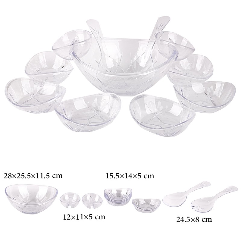 أضف لمسة من الأناقة والعملية إلى تجربة تناول الطعام مع طقم الطعام الاكريليك الشفاف المكوّن من 11 قطعة. مصنوع من اكريليك شفاف عالي الجودة، ويتضمن هذا الطقم جميع القطع الأساسية لخدمة عائلتك وضيوفك بأناقة. كل قطعة خفيفة الوزن ومع ذلك متينة، ومصممة لتحمّل الاستخدام اليومي مع الحفاظ على مظهر عصري وأنيق. مثالي لكلٍ من الوجبات اليومية والمناسبات الخاصة، حيث يُكمل هذا الطقم أي ديكور طاولة، ويُناسب تناول الطعام في الأماكن المغلقة أو الهواء الطلق. بفضل مظهره البلوري الشفاف، يعرض الطعام بشكلٍ جذاب، ويضيف لمسةً راقية إلى إعداد الطاولة.