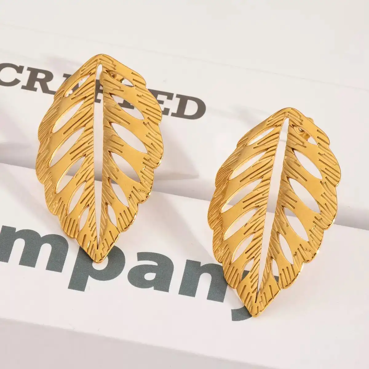 أقراط أنيقة على شكل أوراق مصنوعة من الذهب عالي الجودة. تتميز بتصميم رقيق وتفاصيل معقدة، منحوتة بدقة. مثالية لإضافة لمسة من الأناقة والرفاهية لمظهرك.