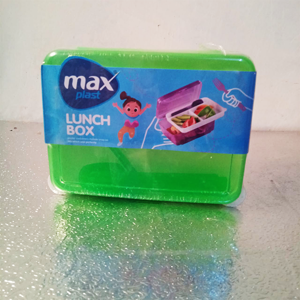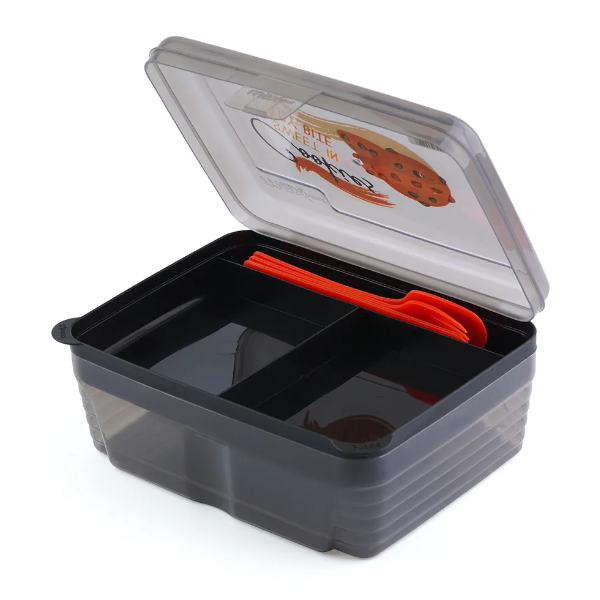 ميجا لانش بوكس من ماكس + معلقة وشوكة وسكين - صندوق غذاء من طابقين ومقسم بلاستيكي متحرك عملي للغاية للاستخدام في المدرسة - 1200 مل
